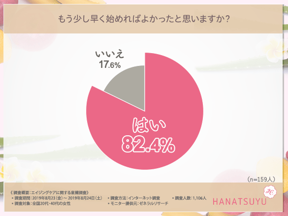 一方で、30代後半/40代と回答した40代女性に、「もう少し早く始めればよかったと思いますか?」と質問すると、8割以上の方が『はい』と回答しました。